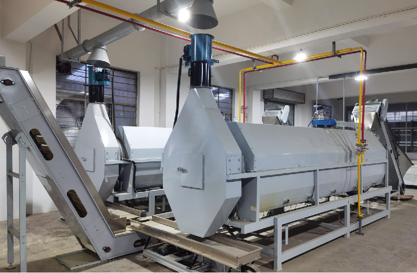 作業(yè)原理:機(jī)組配置溫度、速度、光電等傳感設(shè)備,配套自動(dòng)勻葉、儲(chǔ)料等控制機(jī)組,實(shí)現(xiàn)對(duì)產(chǎn)能計(jì)量、平衡鮮葉流量、分段控制筒壁溫度、轉(zhuǎn)速及排濕風(fēng)量等的自動(dòng)控制。
